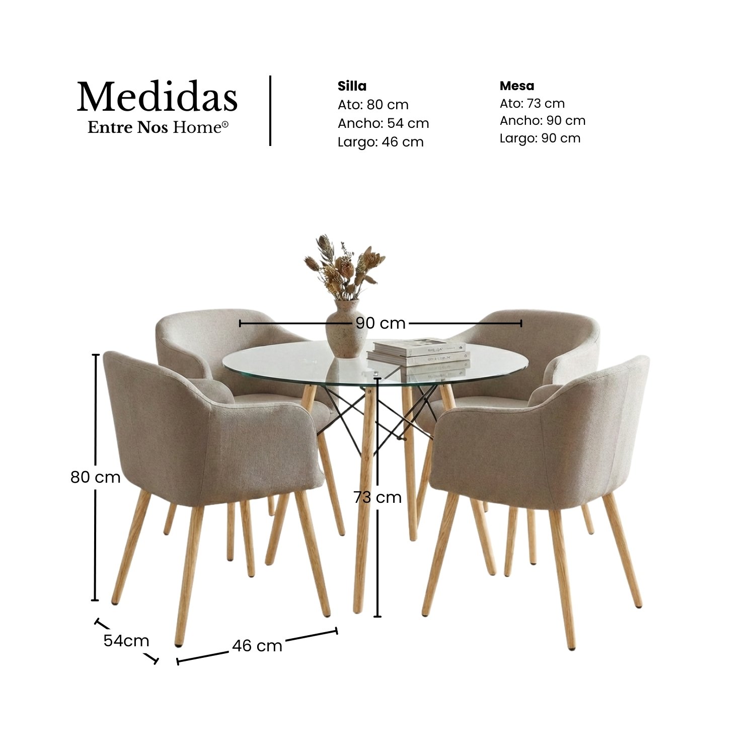- Dimensiones Mesa: Diámetro 90 cm x Alto 73 cm.