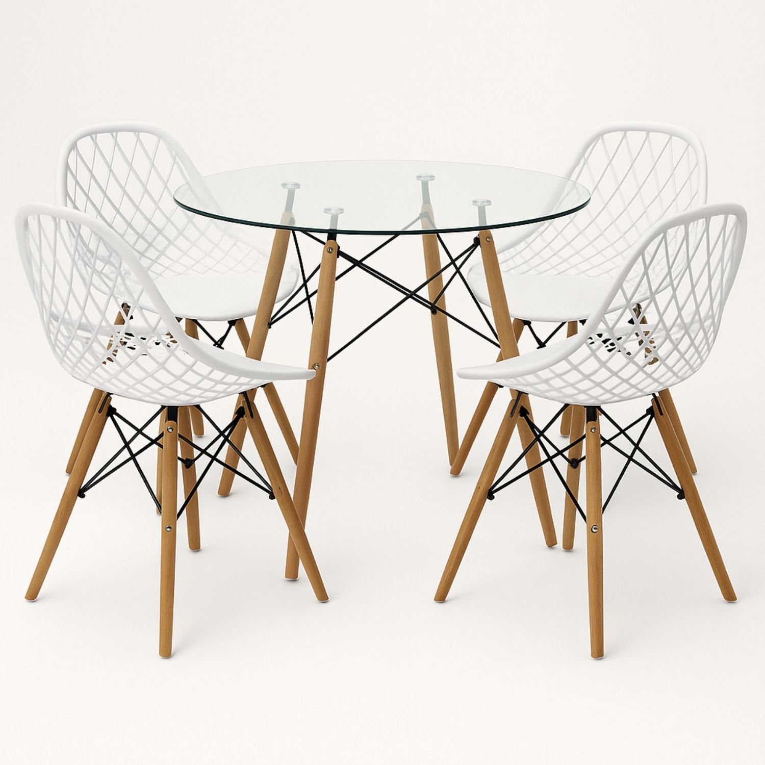 El Juego de Comedor Aura 4 Puestos está diseñado para quienes buscan un balance perfecto entre funcionalidad y estilo. Con una mesa de vidrio claro que aporta luminosidad y una base de madera natural que suma calidez, este conjunto es la clave para transformar tu comedor en un espacio moderno y acogedor. Acompañado por sillas blancas de diseño contemporáneo, este juego captura la esencia del diseño nórdico, caracterizado por su simplicidad, elegancia y versatilidad. Perfecto para espacios pequeños y grandes.