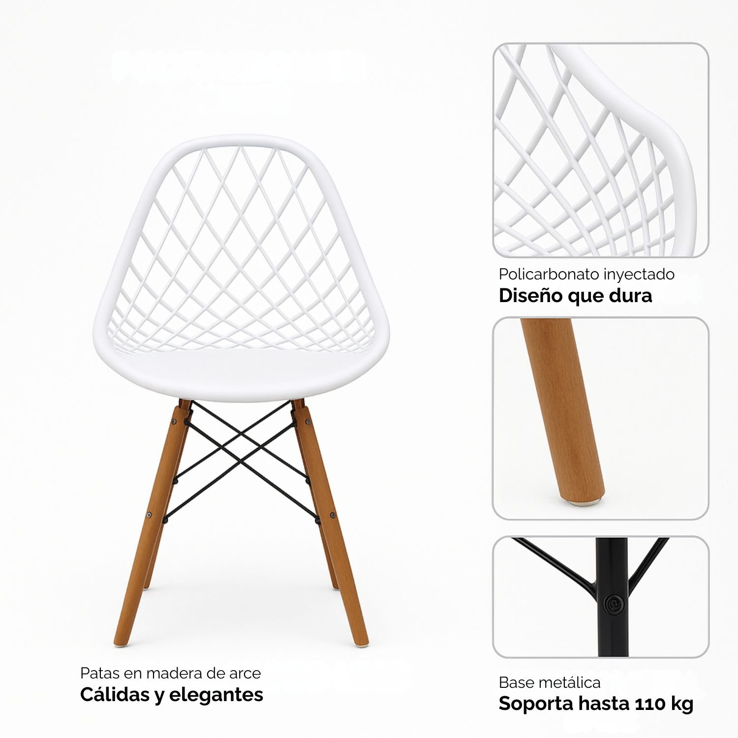 Sillas blancas de líneas limpias y modernas que capturan la esencia del diseño nórdico. Cómodas, elegantes y perfectas para complementar la mesa de vidrio con sofisticación minimalista.