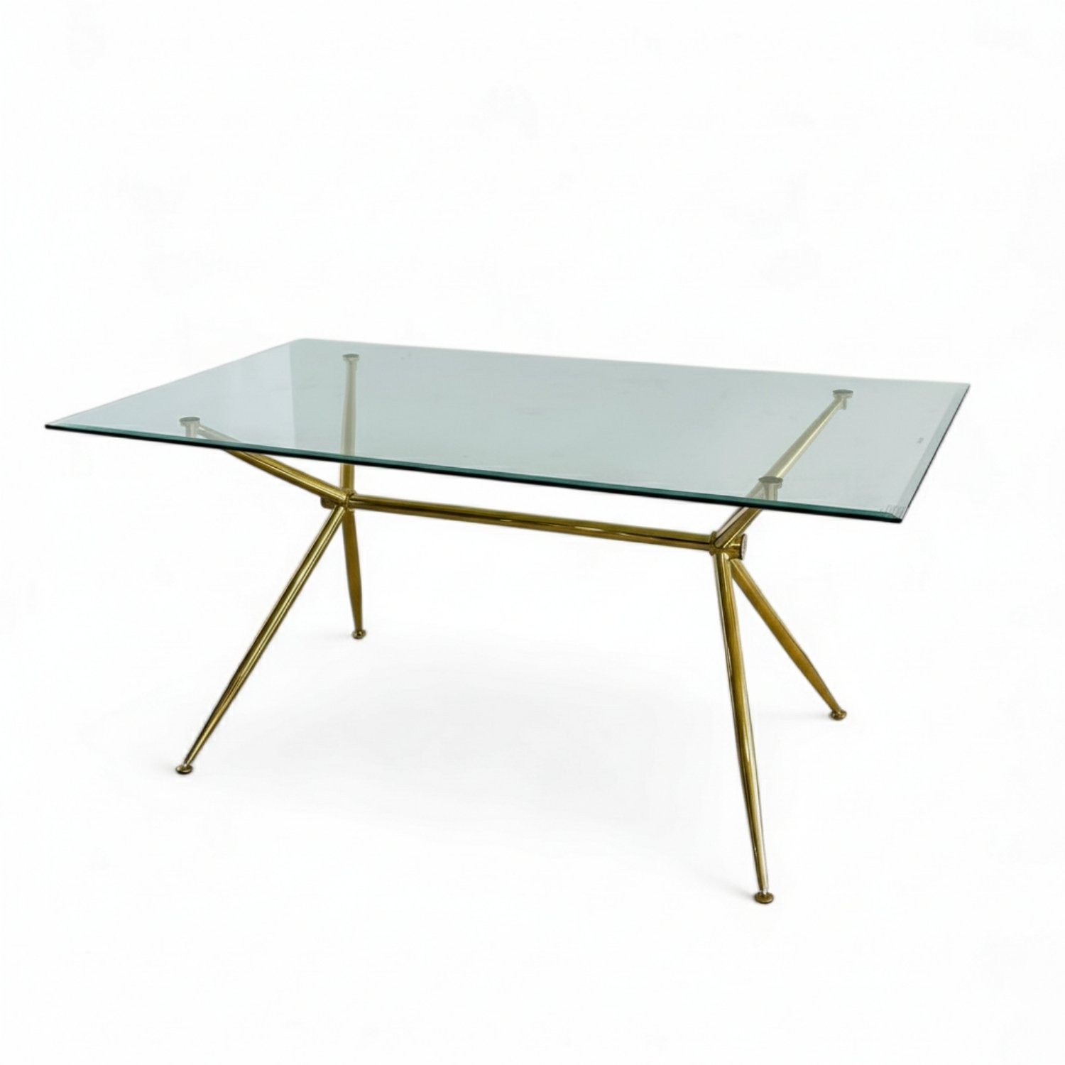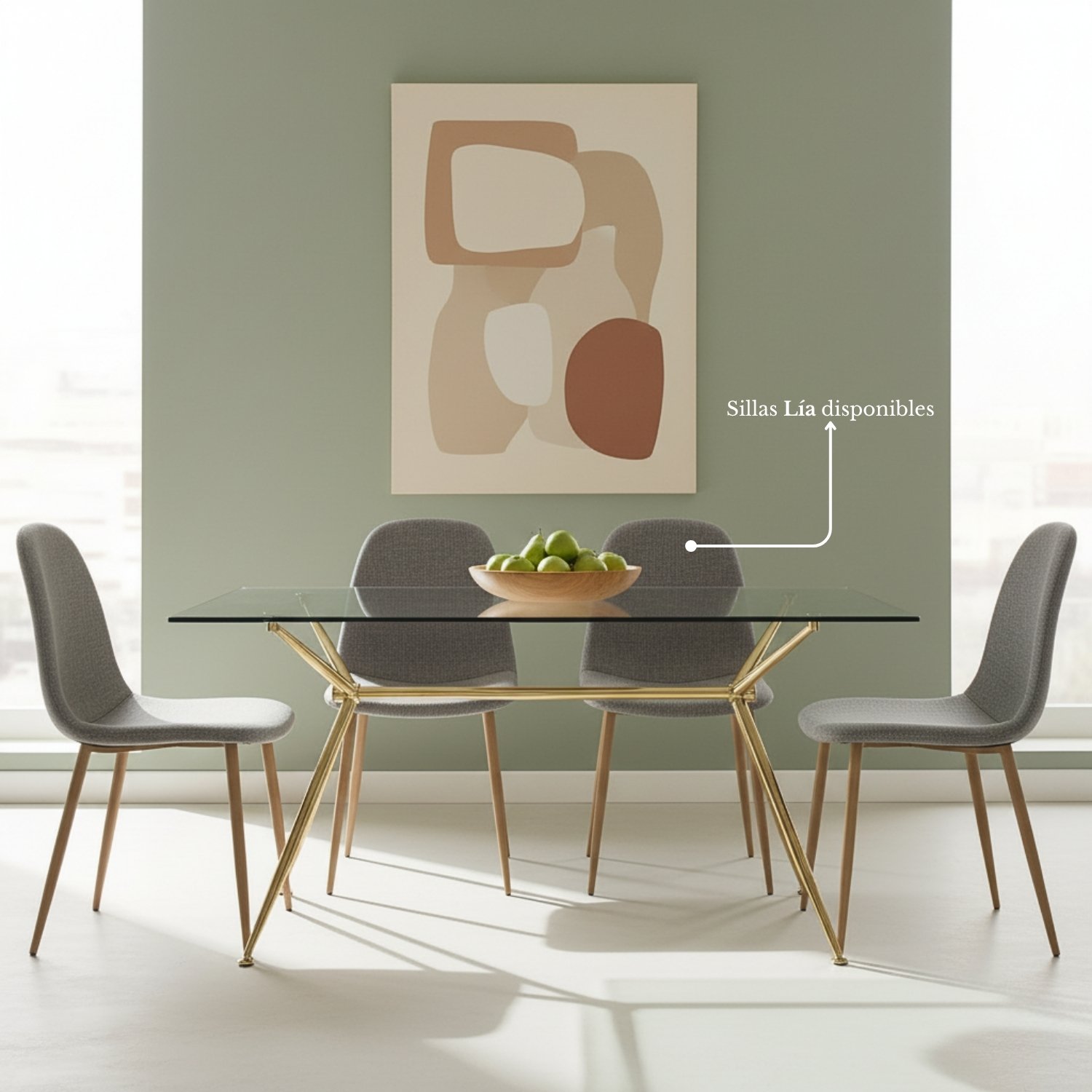La Mesa de Comedor Brie es la pieza central que inyectará lujo, sofisticación y arte en tu hogar. Su diseño se inspira en el estilo Mid-Century Modern, destacando una base geométrica y escultural en tono dorado/latón y una tapa de vidrio transparente. Esta combinación es perfecta para quienes buscan una estética aspiracional sin sacrificar la funcionalidad. Queremos acompañarte a crear un espacio que refleje tu estilo único y sofisticado.