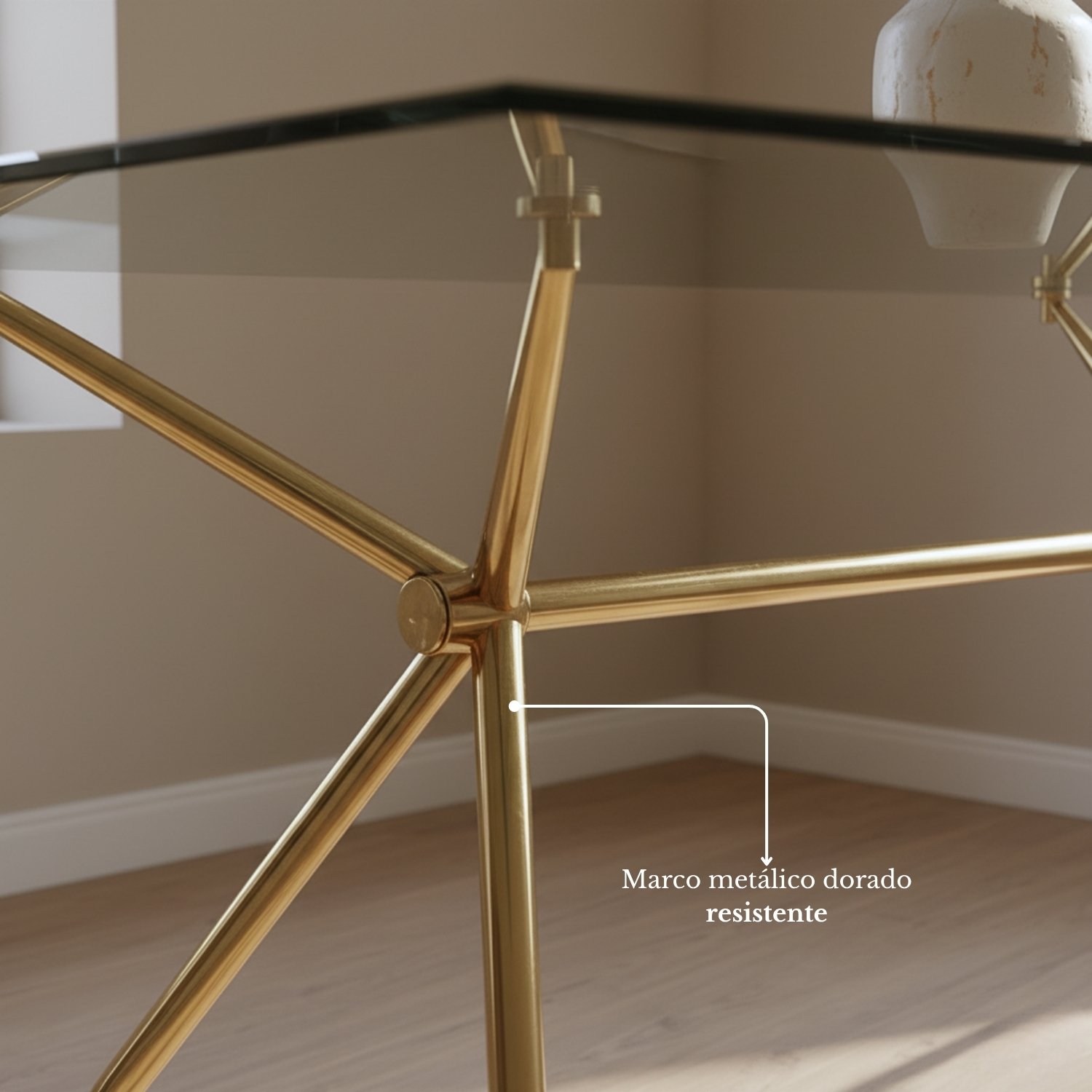 El vidrio templado transparente y la base ligera son la clave para resolver el agobio espacial, haciendo que tu comedor se sienta más grande y luminoso.