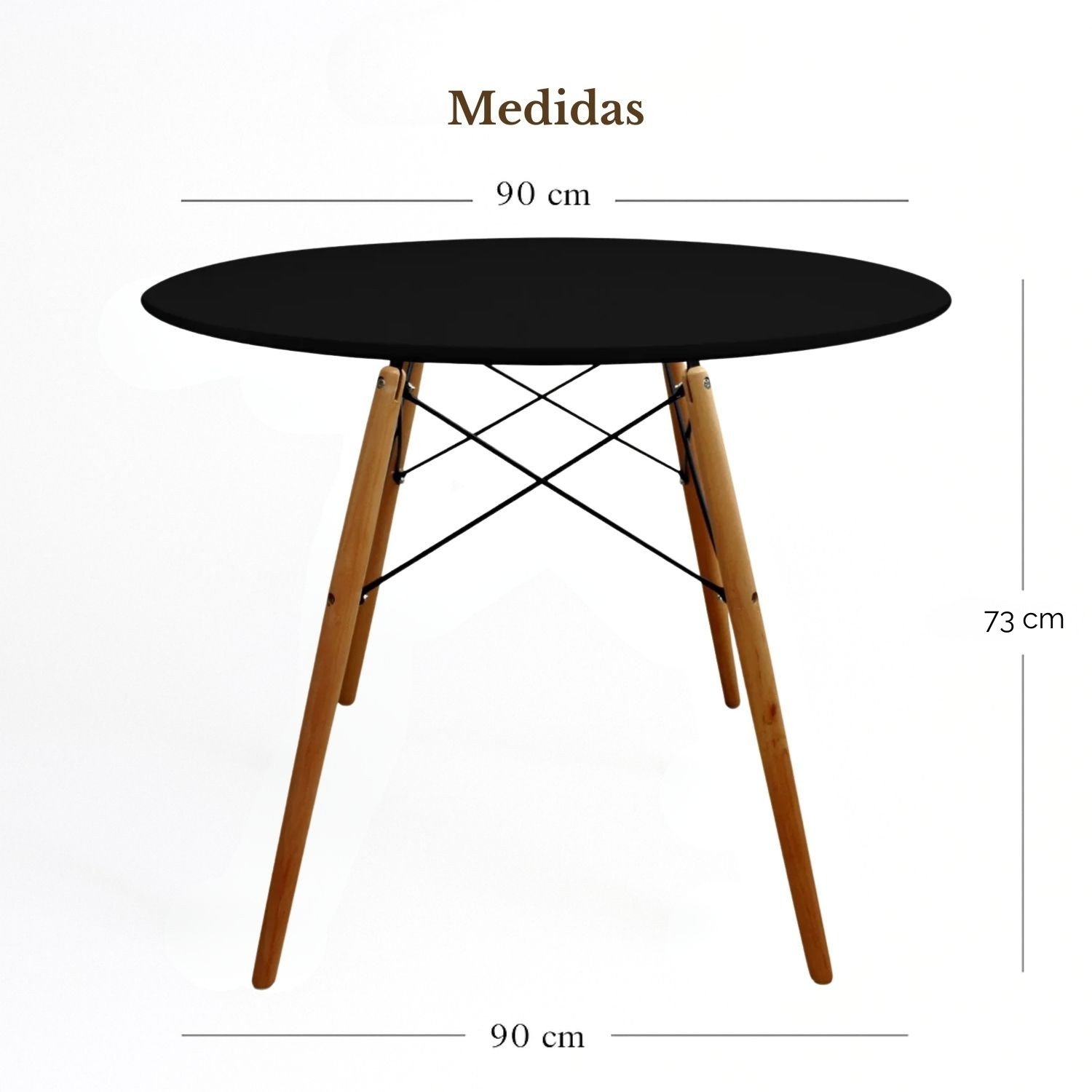 Inspirado en la estética escandinava, este producto destaca por sus líneas limpias y su combinación de colores contrastantes: la sobria tapa negra y las patas de madera natural. Este diseño no solo aporta belleza al espacio, sino también un aire contemporáneo que resalta la armonía entre funcionalidad y estilo. Su tamaño redondo la hace perfecta para optimizar espacios sin dejar de ofrecer amplitud.