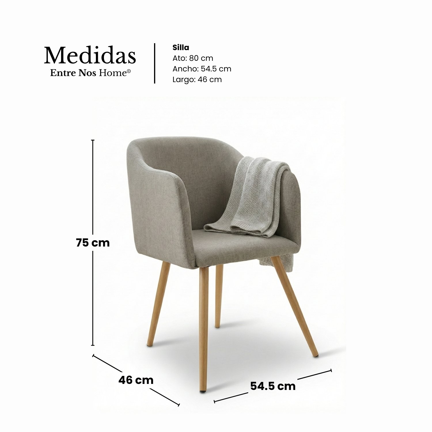 - Dimensiones: Alto: 80 cm x Ancho: 54.5 cm x Largo: 46 cm.