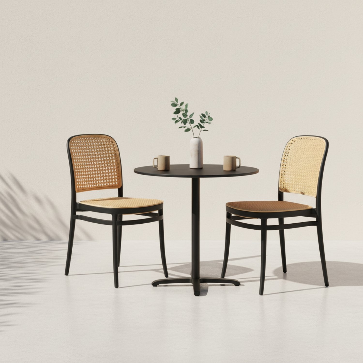 El tejido de ratán en el respaldo y el asiento permite que la luz fluya, creando una sensación de mayor espacio y luminosidad, perfecto para optimizar cada metro cuadrado.