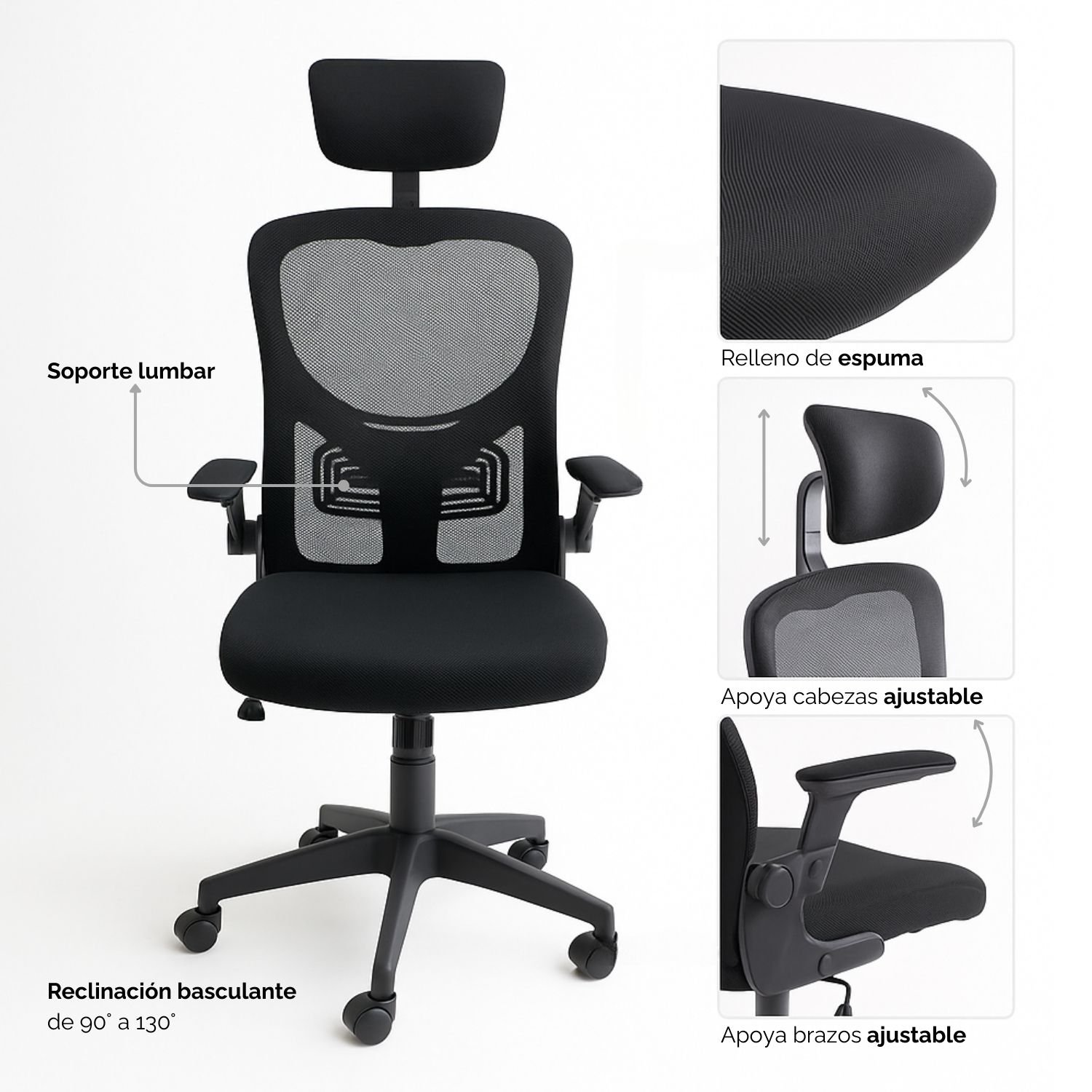 Dotada de un sistema de ajuste de altura, la silla Zenith permite adaptar la posición a las necesidades específicas de cada usuario. Esto garantiza un nivel óptimo de confort, reduciendo la tensión en la espalda y promoviendo una experiencia de trabajo más productiva. Su diseño ergonómico asegura que cada aspecto de la silla esté pensado para tu bienestar, ofreciendo soporte lumbar y un asiento acolchado para largas jornadas.